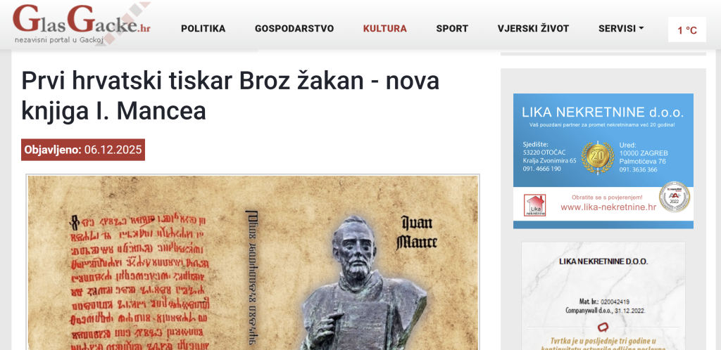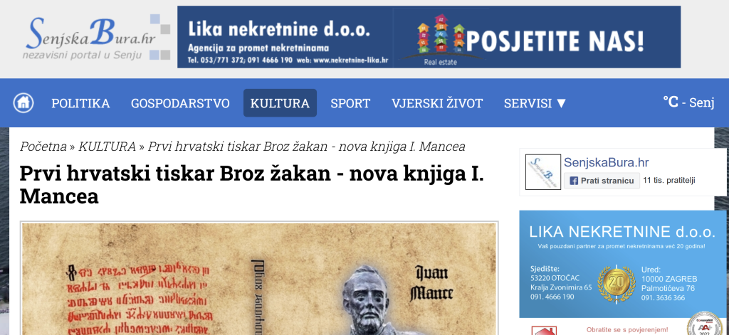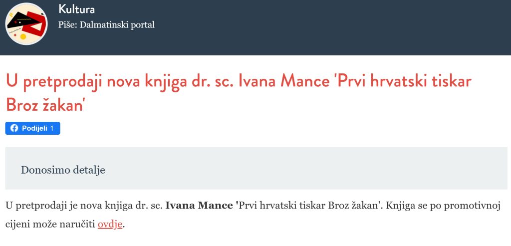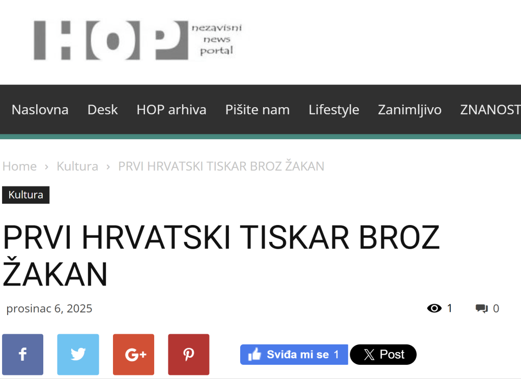 PRVI HRVATSKI TISKAR BROZ ŽAKAN
