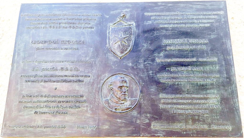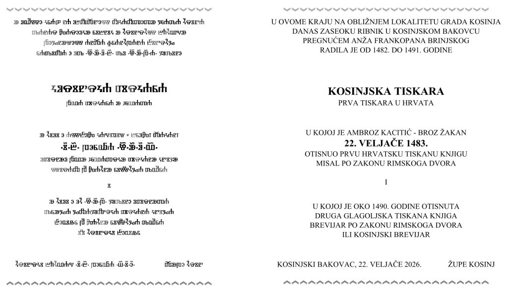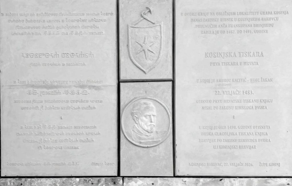 Inicijativom župnika Gornjeg i Donjeg Kosinja vlč. Pere Jurčevića i istraživača kosinjske povijesti dr. sc. Ivana Mancea pokrenuta je ideja oko izgradnje spomenika prvom hrvatskom tiskaru Ambrozu Kacitiću od plemena Kolunića. On je ostavio svoje kodirane tragove kao materijalni dokaz u formi tzv. slijepih otisaka u našoj prvoj tiskanoj knjizi, glagoljskom Misalu po zakonu rimskoga dvora od 22. veljače 1483. Tako su istraživanja književnika Zvonimira Kulundžića 1960.-tih godina predložila, dok su novija istraživanja Ivana Mancea 2023. godine u knjizi Kosinjska tiskara proširila i čvrsto utemeljila upravo Ambroza Kacitića kao tiskara/slagara koji je radio na našem Prvotisku, u prvoj hrvatskoj tiskari u gradu Kosinju. Više o Ambrozu Kacitiću može se pročitati na stranicama Kosinjska tiskara [ovdje].